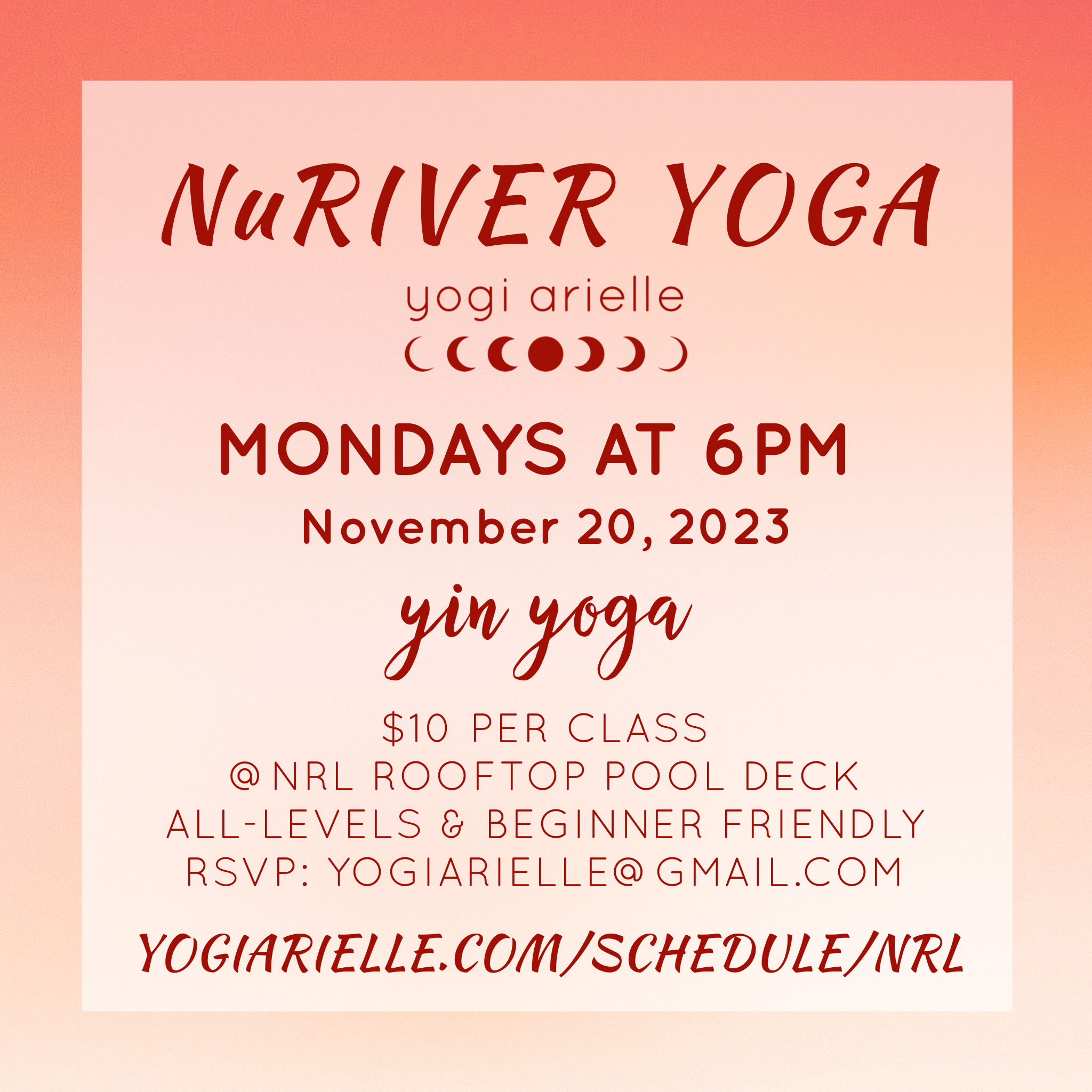 Upcoming NuRiver Yoga Classes
